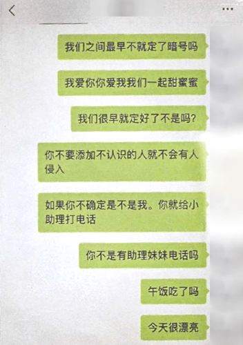 王某和高某拥有相关经验,负责培训手下的业务员,教她们和网友聊天的话术——女孩往往更能抓住女性在恋爱中的情感需求。她们通常不会在聊天中直接承认自己就是明星,而是在只言片语的表达中让对方相信。她们利用许多女网友单身独居、渴望关爱的特点对她们嘘寒问暖、关怀备至,“宝贝”“老婆”“想你”等话从不离口。当然,她们也非常懂得“制衡之术”:“如果对方对你们身份提出质疑,怎么办?”“那我们就会和她们说,‘你相信什么,就会得到什么’。”