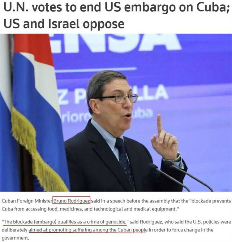 古巴外交部长罗德里格斯在投票前的讲话中控诉,60多年来,古巴一直在抵御无情的经济、商业和金融封锁。封锁让古巴无法获得食品、药品、技术和医疗设备,侵犯了所有古巴人民的生命、健康和福祉权。