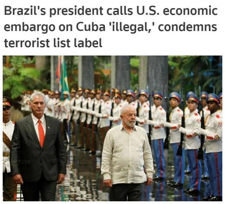 “古巴一直以来都是全球公平治理的倡导者,如今,古巴却成为了非法经济封锁的受害者。巴西反对任何单方面性质的胁迫性措施。我们反对将古巴列入‘支持恐怖主义国家’名单。”
