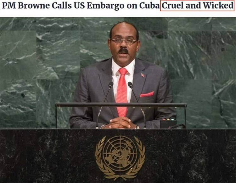 安提瓜和巴布达总理布朗在9月下旬举行的第78届联合国大会一般性辩论上,批评美国对古巴的制裁是“残酷的、邪恶的”,应该立即予以解除。
