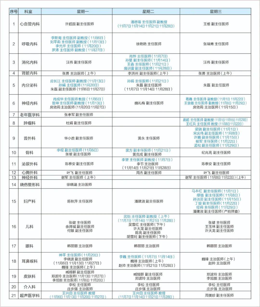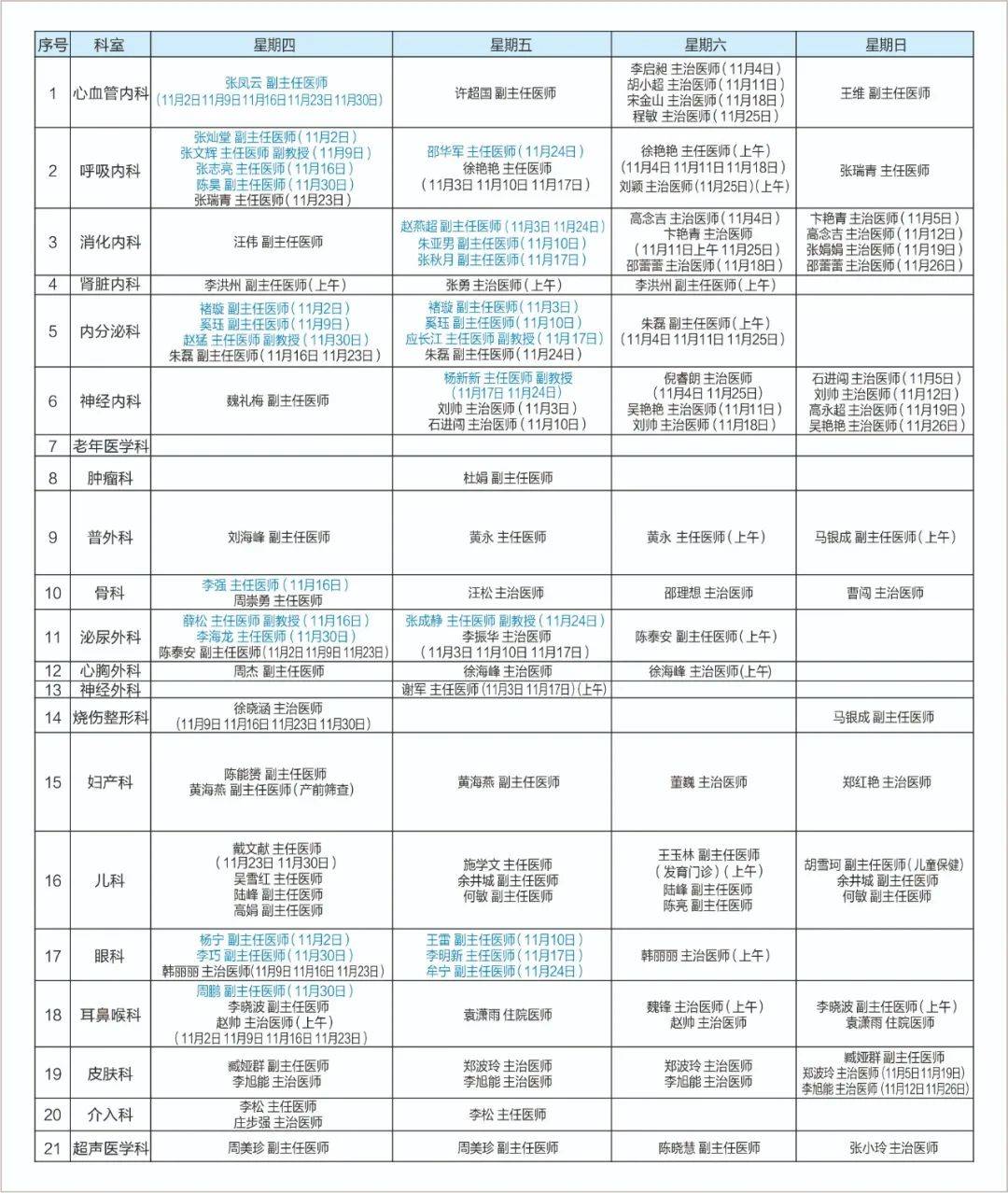 注:标蓝为徐医附院对口帮扶专家;排班如因特殊情况调整,以现场挂号为准。
