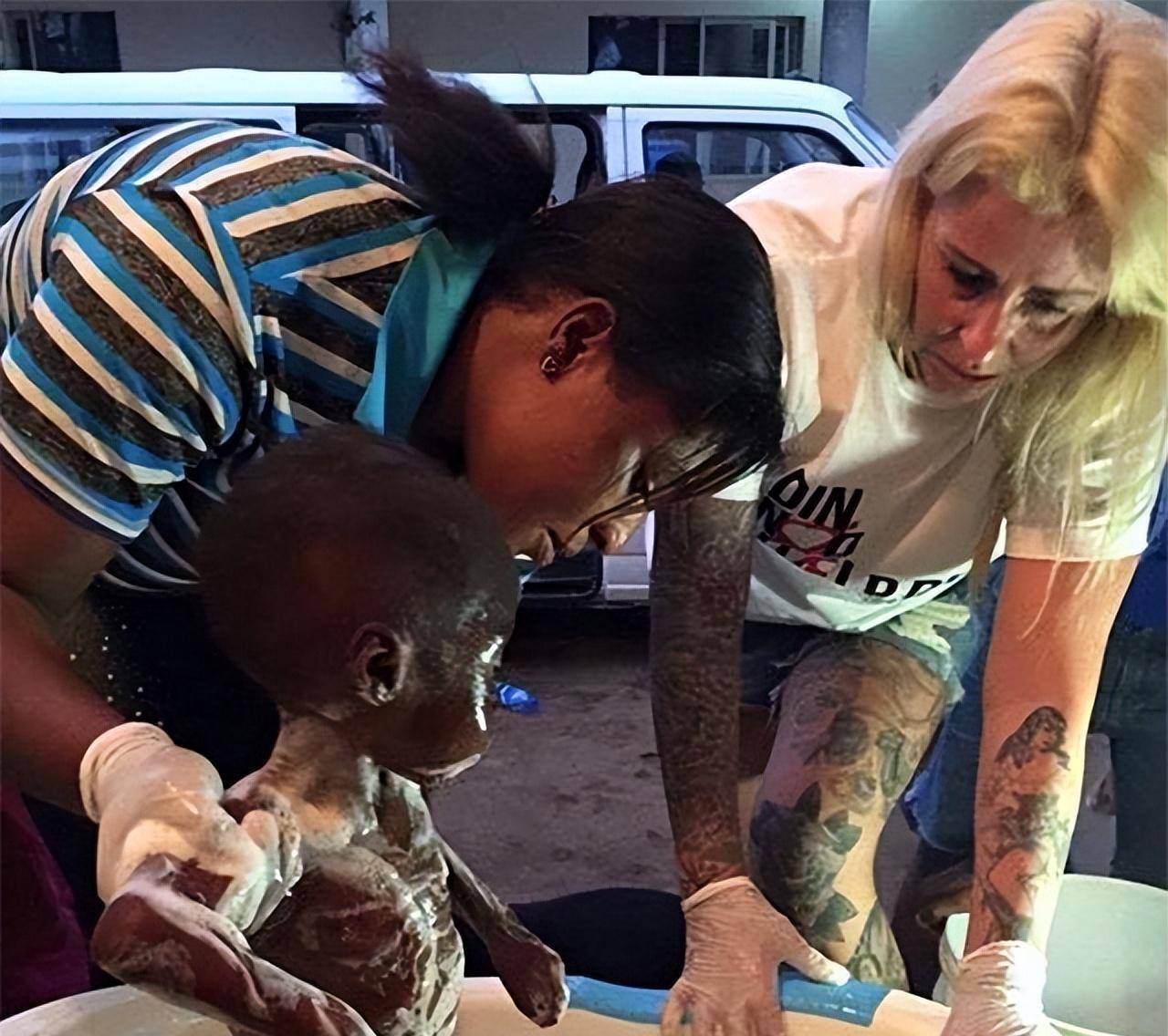 当时志愿者队伍里面有一名叫做Anja的志愿者,她首先注意到路边光着身子,未着丝缕的小男孩。