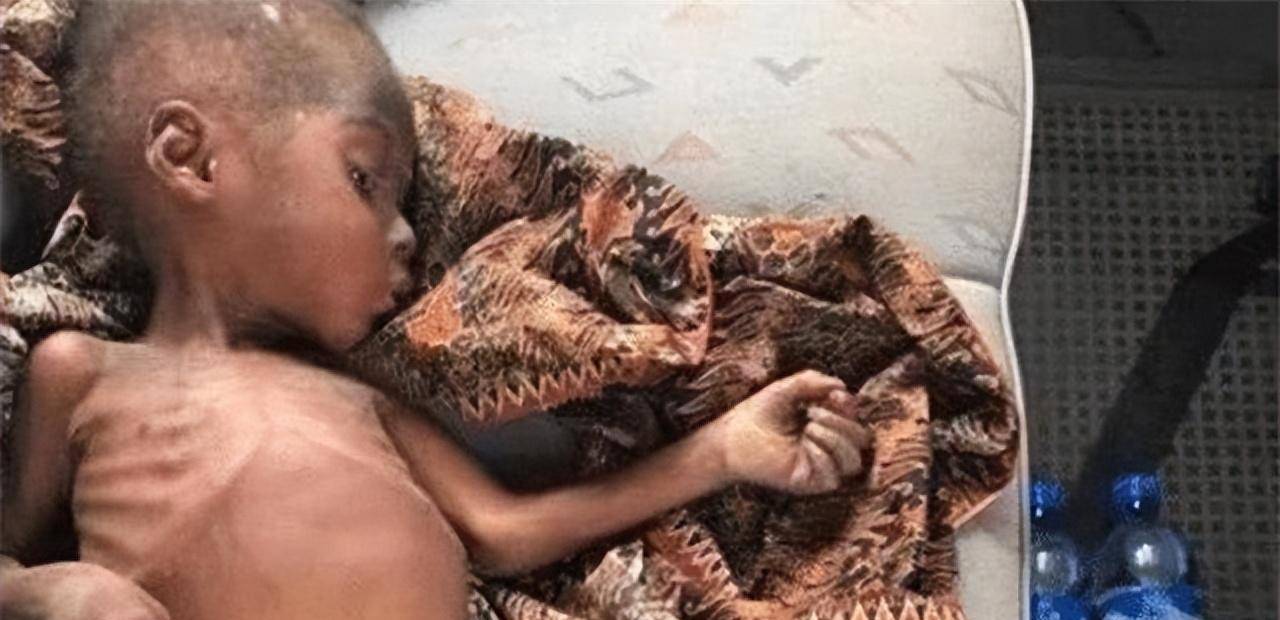 照片里的小男孩瘦弱矮小,全身脏乱不堪,早已是瘦骨嶙峋,似乎下一秒,这个小生命就要逝去。