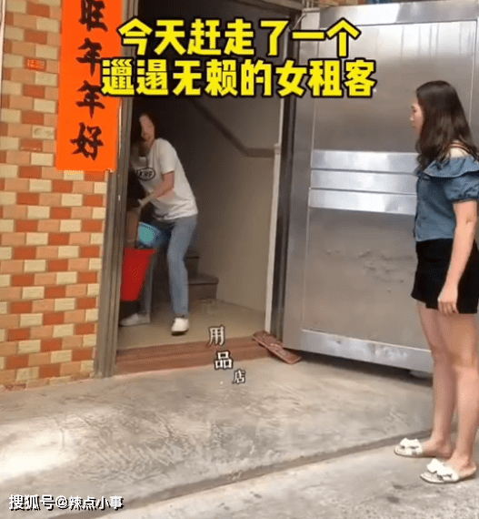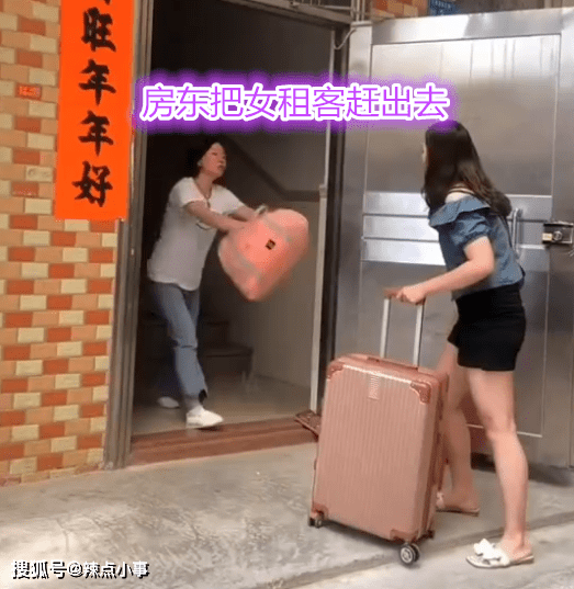 房东把女子的行李拿出来,在门口等女子,女子回来的时候,房东把行李给丢出去,并且表示不退押金,因为女子没有积极打扫卫生