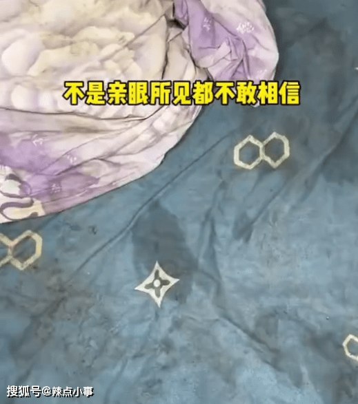 在看女子的床铺上,床单上全是污渍,不知道是水还是菜汤,或者是其他东西,房东都看不下去了,这样的房子自己都不知道怎么打扫