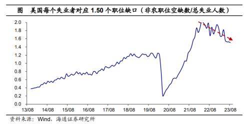 薪资增长继续放缓。10月劳动力平均时薪同比为4.1%,低于上一月的4.3%;环比为0.21%,低于上一月的0.33%。尽管,9月美国职位空缺人数仍在900万以上,但每一个失业者对应1.50个职位缺口,仍处于下行趋势。