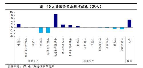 分行业来看,服务业仍是主要贡献。10月服务业新增就业11.0万人,贡献了新增就业的73.3%;政府就业贡献了34.0%(新增就业5.1万人) 。