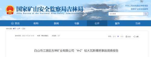 微信公众号“中华人民共和国应急管理部”11月4日消息,近日,国家矿山安全监察局吉林局公布吉林省白山市江源区吉坤矿业瓦斯爆燃事故调查报告。