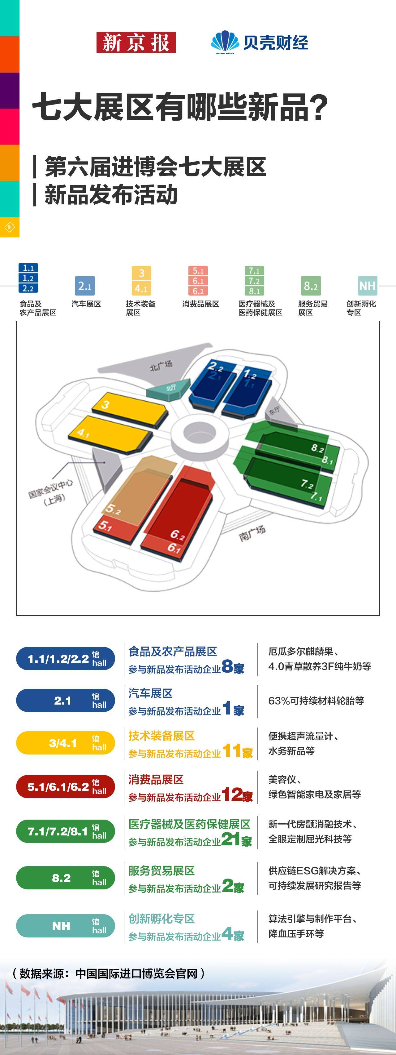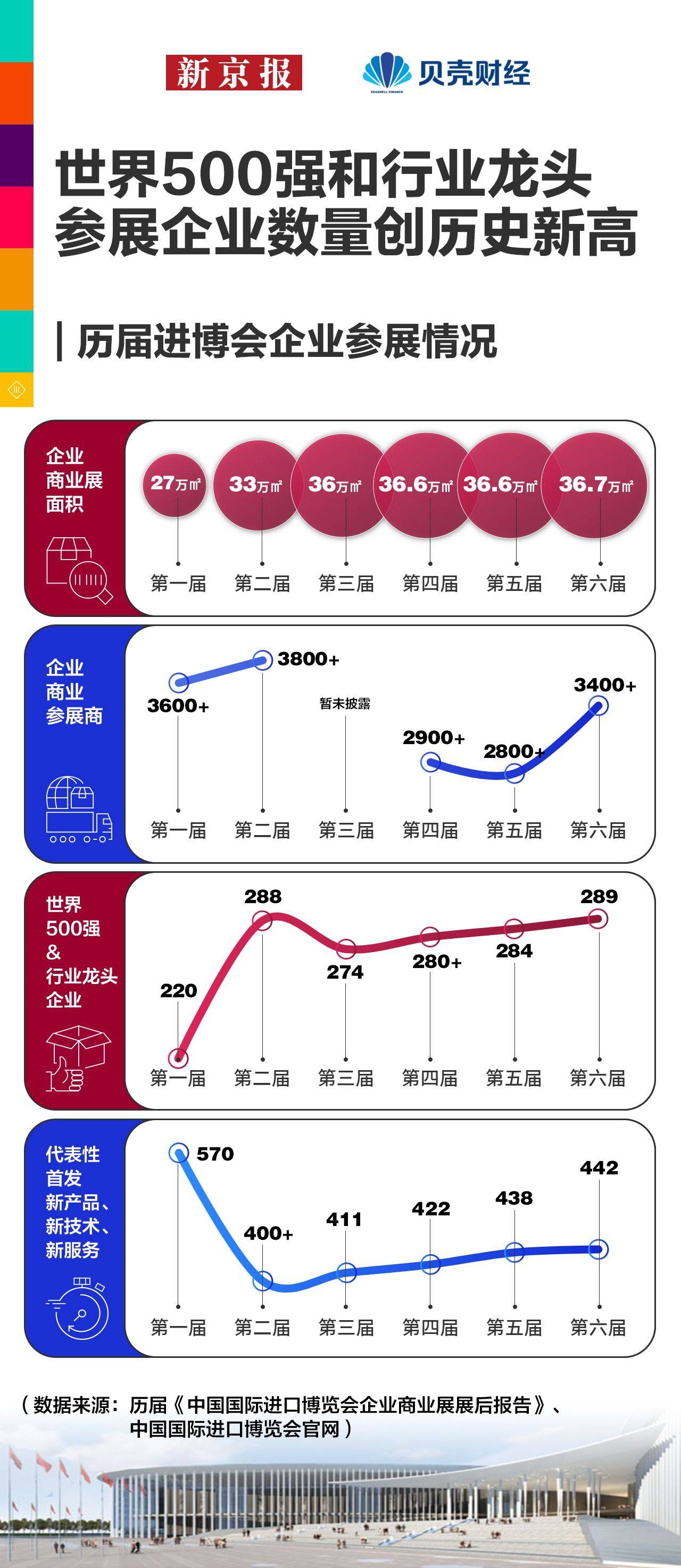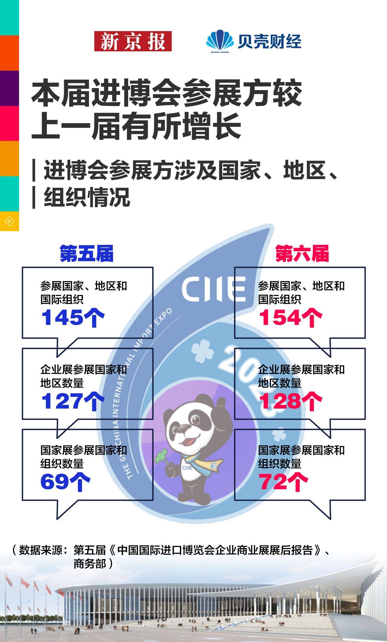 新京报贝壳财经记者透过数据带你一览本届进博会精彩看点,和往届相比,今年进博会“朋友圈6.0”有哪些扩容?
