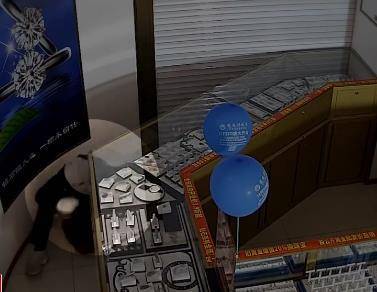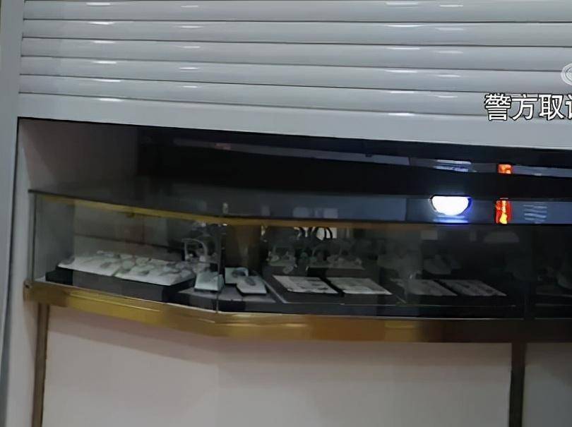 民警发现,金店三面都是卷帘门,只有一面为墙面,靠南边的卷帘门下方有撬动痕迹,应该是用某种坚硬的物件把它撬开。金店内分三块区域,一块区域是放黄金首饰,一块是放玉石,另外一块是放手表的,三块区域里只有黄金柜台上有明显的被敲砸的痕迹。
