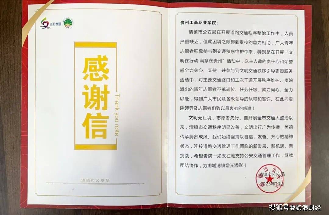近日,贵州工商职业学院收到来自清镇市公安局的感谢信,信中对贵州工商职业学院青年志愿者在清镇市公安局的道路交通秩序整治工作中发挥的关键作用表示由衷感谢。