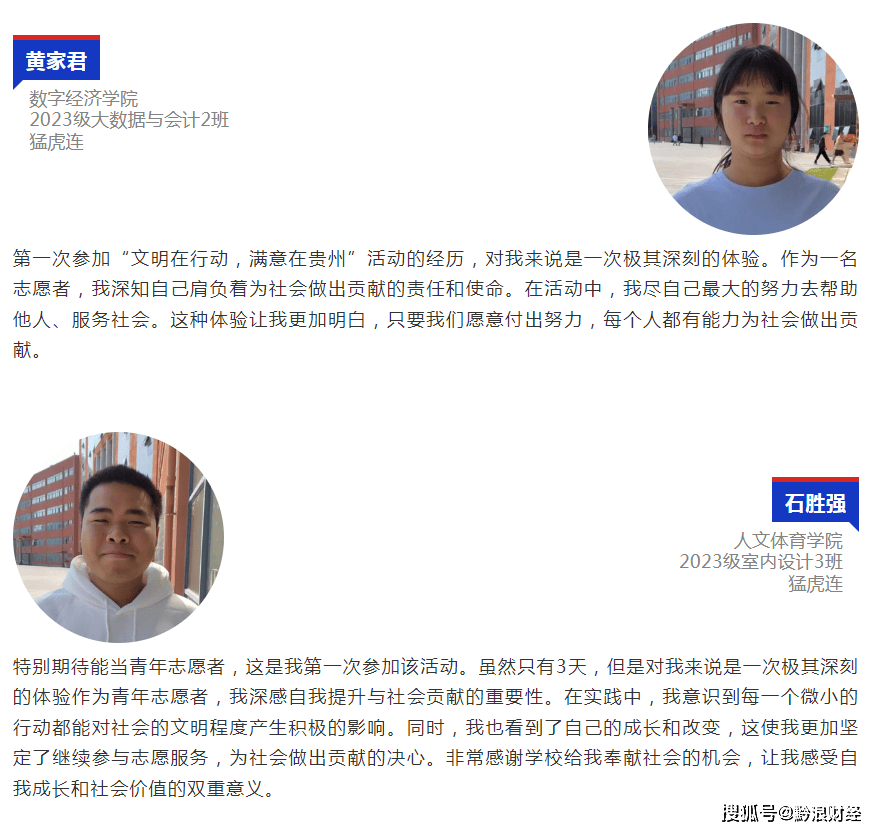 贵州工商职业学院将继续支持“文明在行动·满意在贵州”活动,继续团结协作,为所在区域创造更宜居和宜行的环境;始终秉承“自强、卓越、报国”的学校精神,致力于培养具有社会责任感和历史使命感的学生;将持续鼓励学生积极参与社会实践和志愿服务活动,弘扬社会主义核心价值观,为社会做出更大的贡献。(文/邓青)
