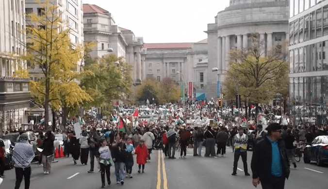 报道说,4日下午,数万人聚集在华盛顿举行集会,呼吁以色列和哈马斯停火,并要求美国政府停止援助以色列。4日晚,一些抗议者摇晃着白宫一个入口的大门,并在白宫围栏上涂上红漆,还有人在白砖上留下了红色的手印。