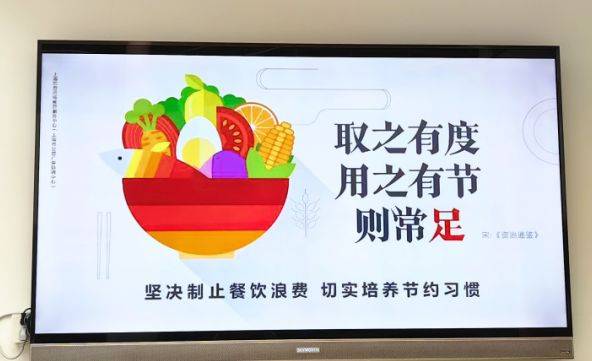街道机关食堂严格落实各项节约措施,号召机关的党员干部职工从自身做起、从家庭做起,勤俭节约、珍惜粮食。街道在机关食堂张贴宣传海报、宣传标语,摆放宣传台卡,并设置志愿服务岗,引导大家适量取餐、光盘用餐,养成文明健康、环保节约的用餐习惯。