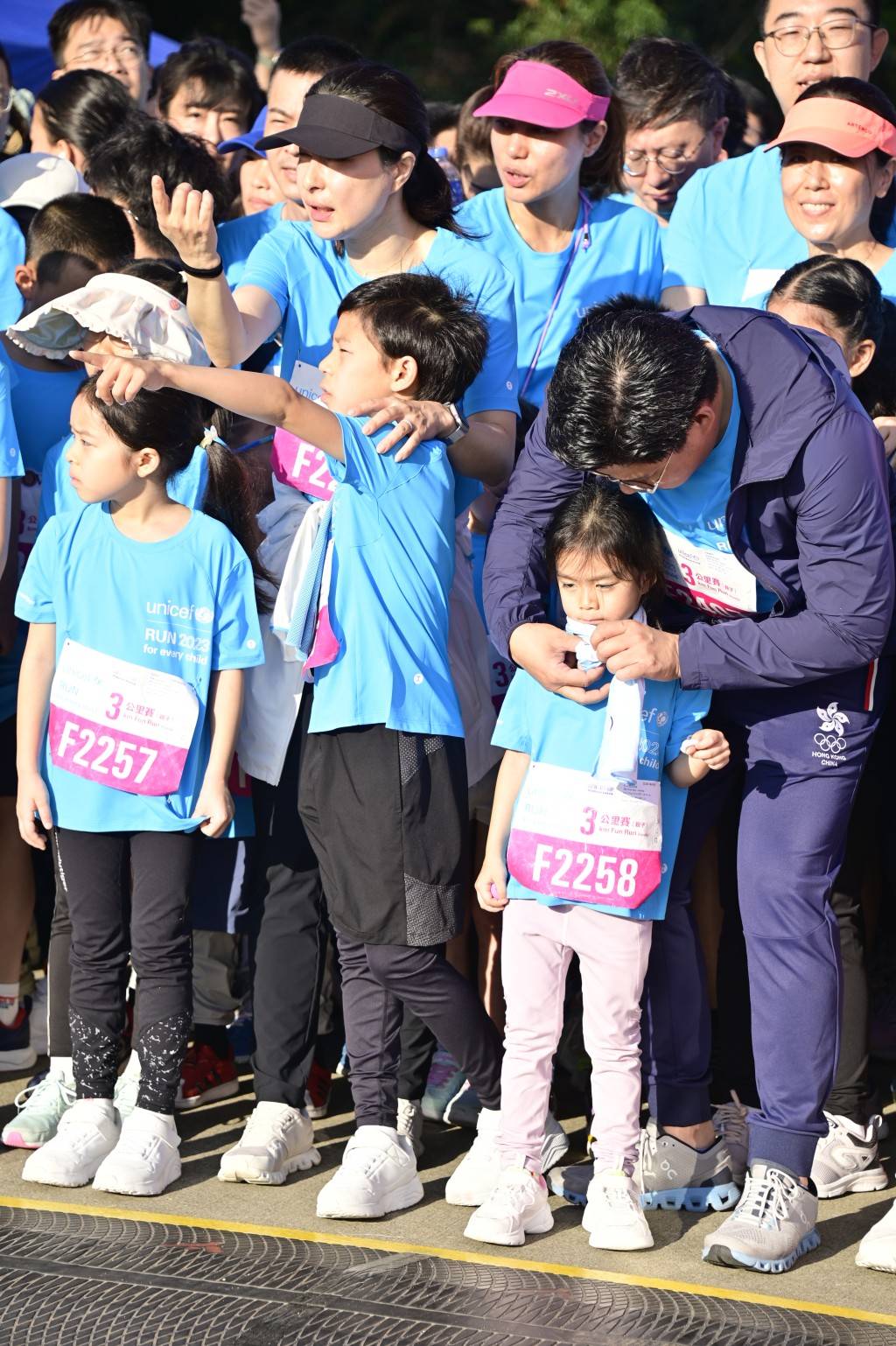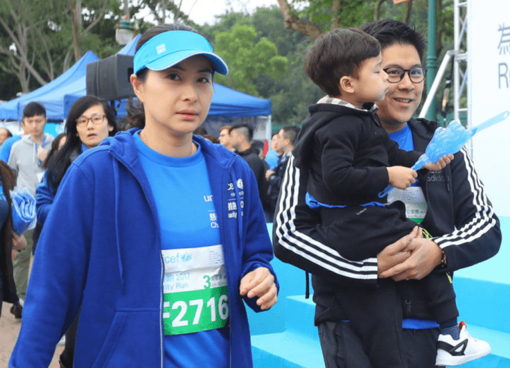 11月5日,联合国儿童基金会在香港举行慈善跑步活动,郭晶晶与霍启刚夫妇携三个孩子参与,一家五口罕见公开亮相。