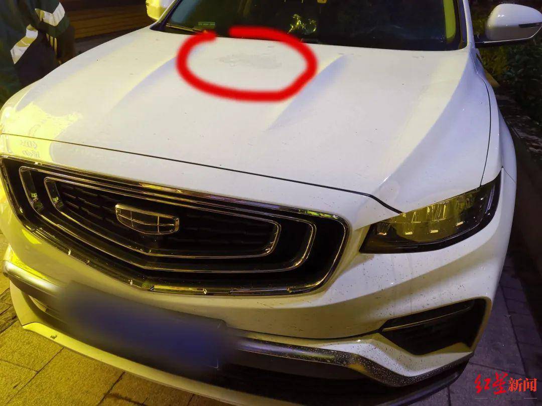 ▲楼下汽车引擎盖被砸到。图据大安公安