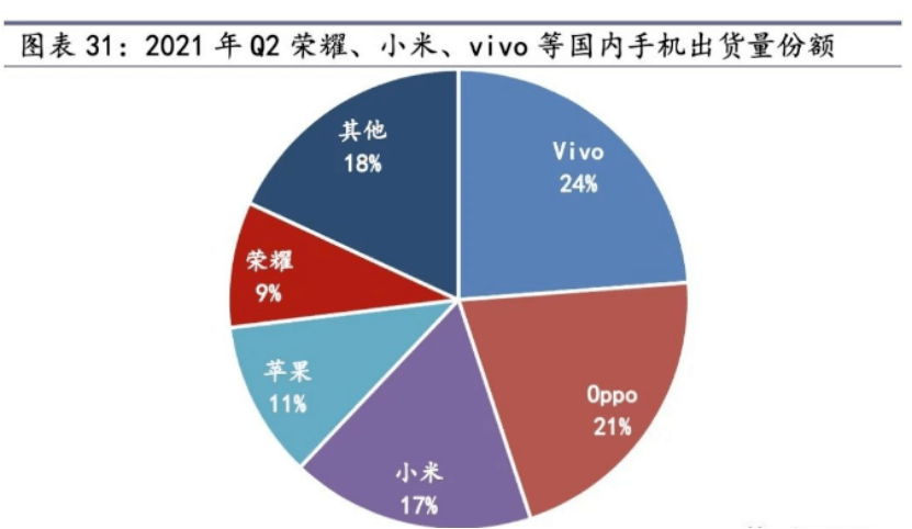 之后,欧菲光瞄准了国内厂商,截止到2021年国内厂商占据了欧菲光的前三大客户。