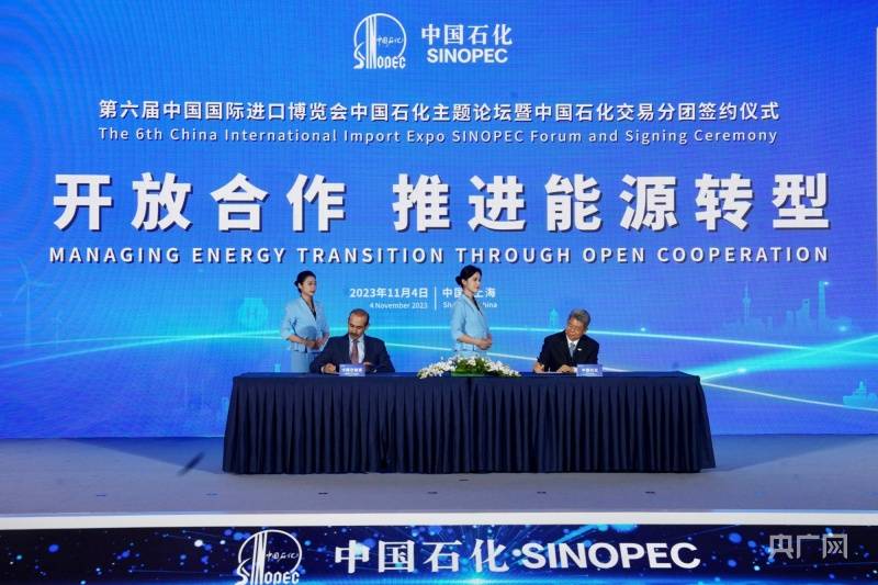 第六届进博会中国石化主题论坛暨中国石化交易分团签约仪式现场(央广网记者 林馥榆 摄)