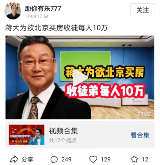 问题来了:以今时今日蒋大为的号召力,他能够收多少徒弟?什么时候才能攒够买房子的钱?