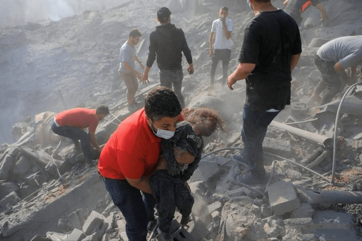 有一亲历者表示,自己当时在购买食物,从天而降的炸弹在无任何预警的情况下砸进了人群,一时间地动山摇。在尘土与硝烟散去后,他看见地面上有个大坑,周围全是尸体。加沙民防部门的人表示,以色列空军发动了六次空袭,目击者形容那天的场景时用了“世界末日”四个字,救援人员只能徒手挖掘生还者,有失去儿女的母亲悲痛欲绝。