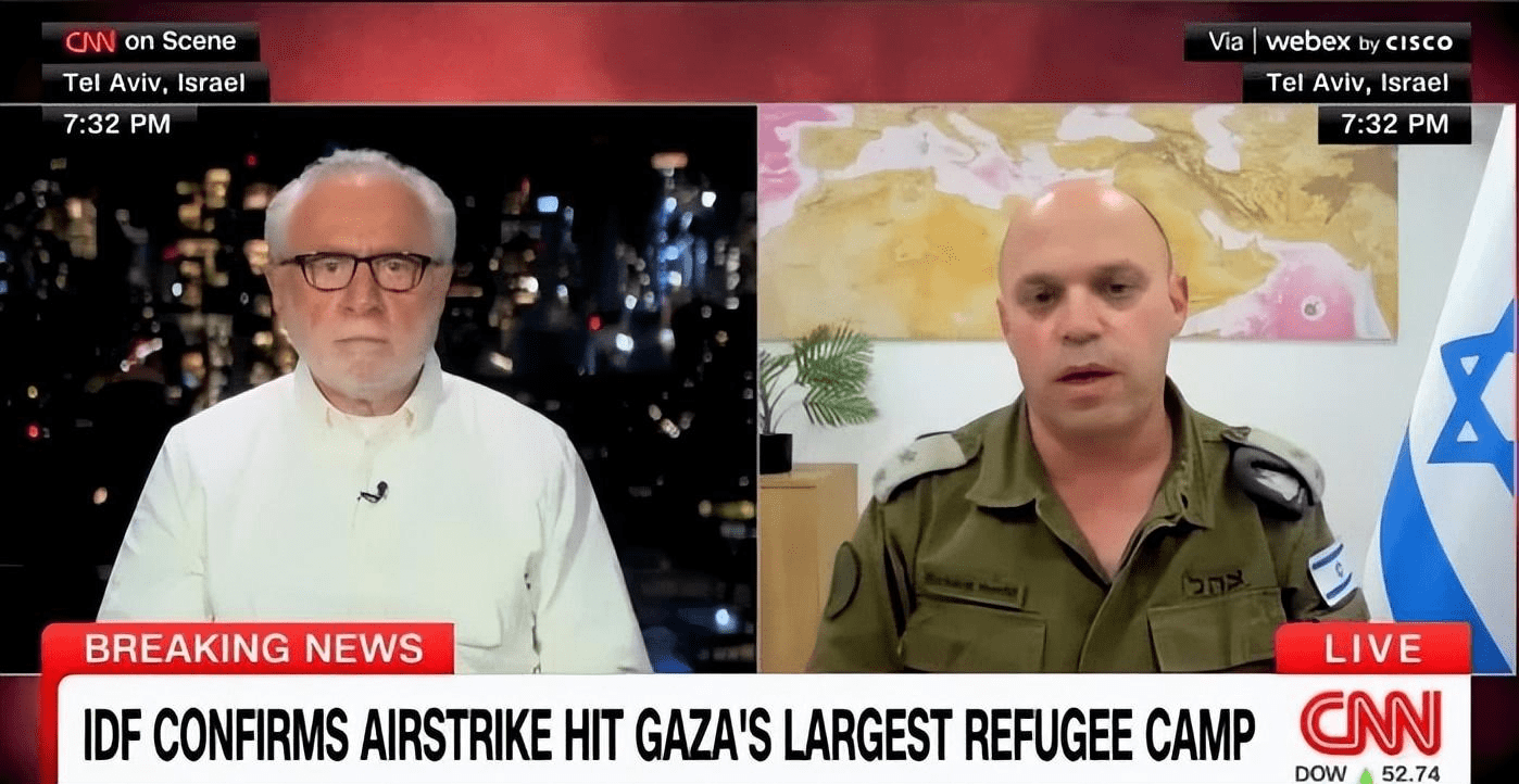 对于此次行动,以色列国防军的多名发言人在接受多家外媒采访时,为以色利的行动辩护。其中,以方赫克特中校在接受CNN采访时,先是肯定的表示哈马斯的领导人就藏身于营地内。在主持人布利策两度与赫克特“对质”,提及这次空袭中有很多无辜人员伤亡时,赫克特一脸无所谓的说道,"这就是战争的悲剧"。同时他还表示,“以色列军方已经发出过向南撤离的警告”。