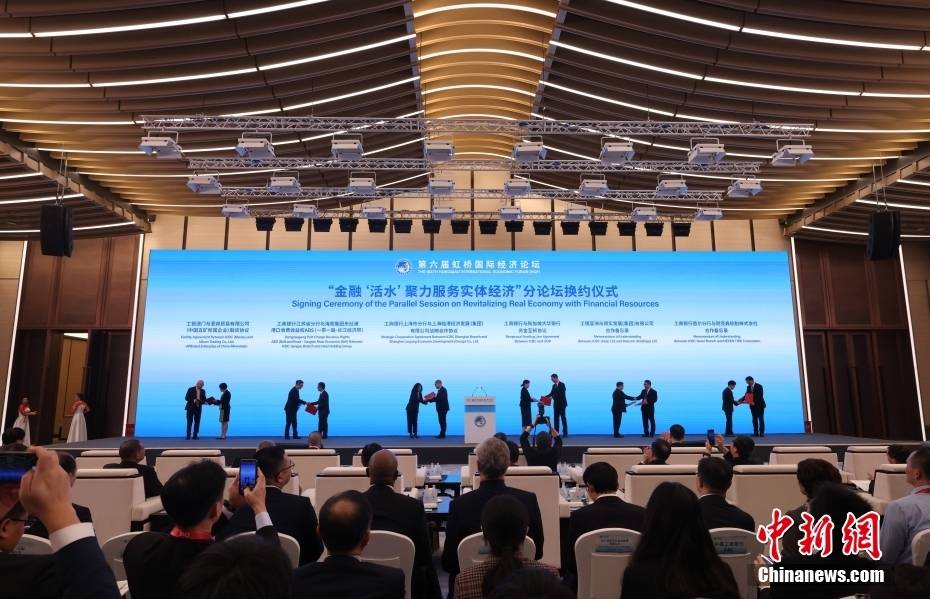 11月5日,第六届虹桥国际经济论坛“金融‘活水’聚力服务实体经济”分论坛在上海举行,图为换约仪式。中新社记者 杨可佳 摄