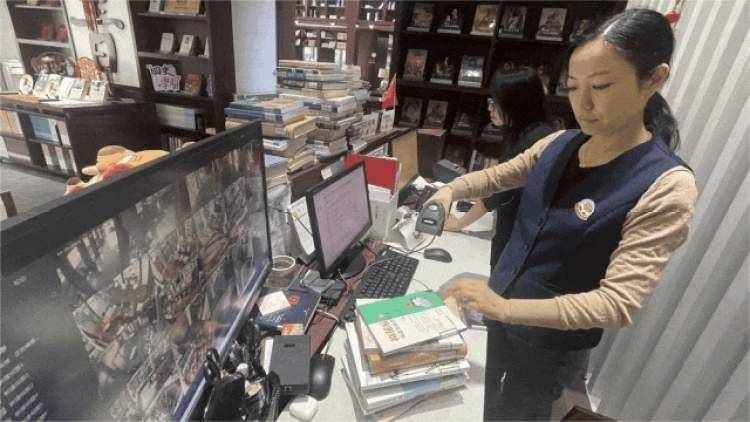 图书馆工作人员和志愿者对新书进行分类整理及上架,方便读者借阅