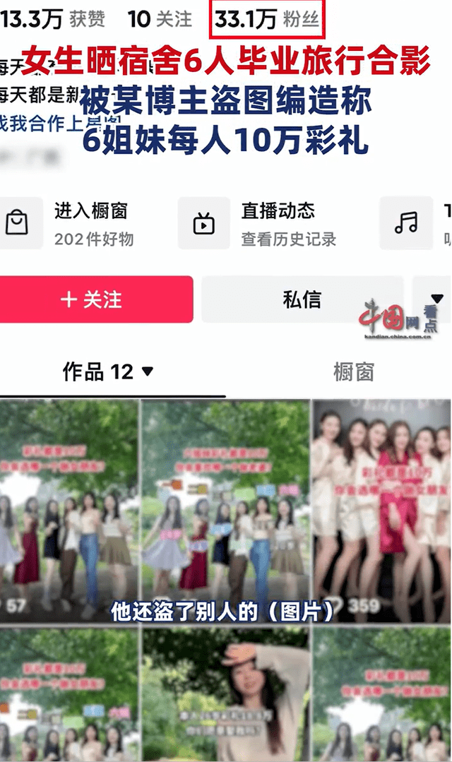 据中国网看点报道,近日,广州的小婷(化名)晒出了1张自己宿舍6人的毕业旅行合影,不料被某博主盗图,并配文称,“6姐妹彩礼都是10万,你会选哪个做老婆?”