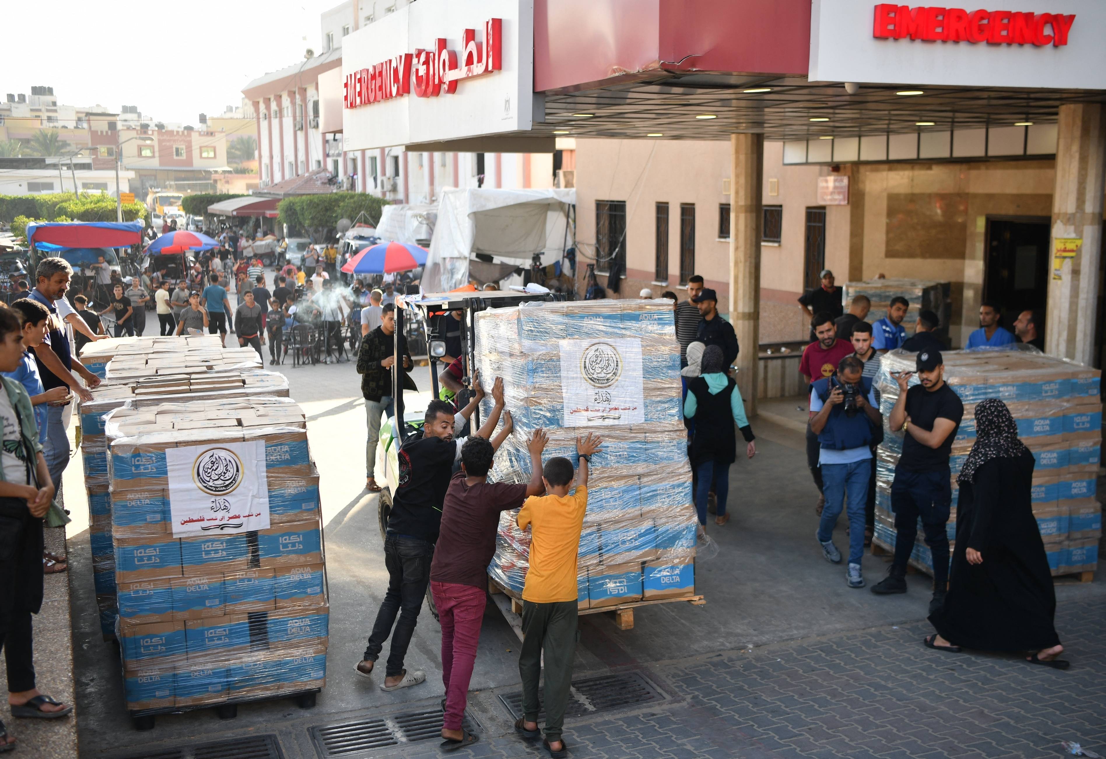 原标题:加沙供水系统崩溃 埃及饮用水援助物资抵达当地医院