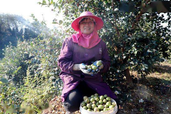 11月2日,江西省抚州市广昌县赤水镇枫岭村陈爱兰正在自家的油茶山里采摘油茶籽,今年,她家320亩的油茶果收入可达1.5万余元。