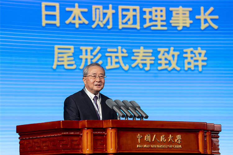 日本财团理事长尾形武寿致辞。主办方供图