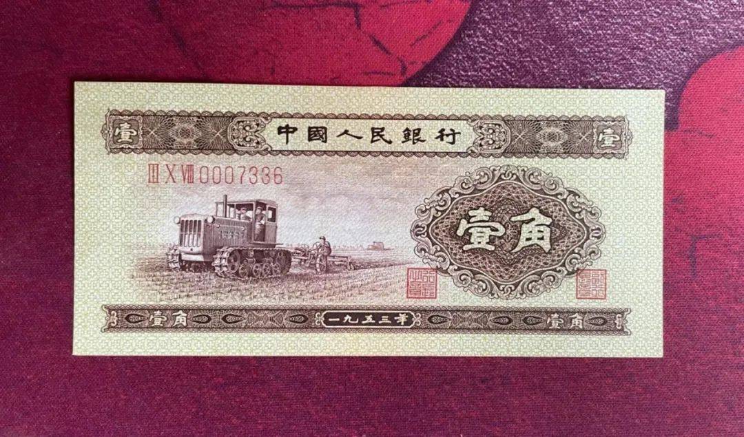 可能有朋友已经发现,我国发行的所有1角,基本上主色调都是黄的。但是被叫做黄1角的,却是独属于1953年的1角纸币。