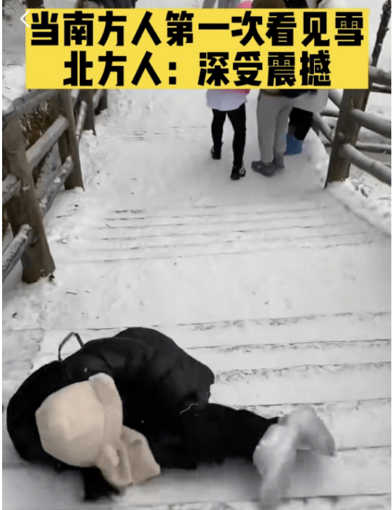 有时东北学生走路更小心,因为从小体验过摔倒有多疼。倒是南方人,可能看到雪会很兴奋,这种场面在老家体验不到。更不知原来出门上学要学“新步伐”。