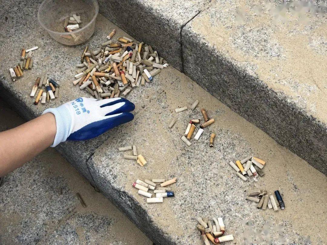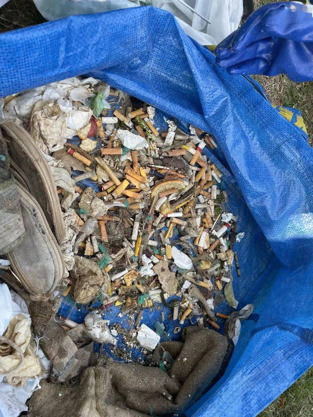 一枚烟蒂的危害性已经如此巨大,但在岸边,好料菌捡到了数不清的烟蒂。