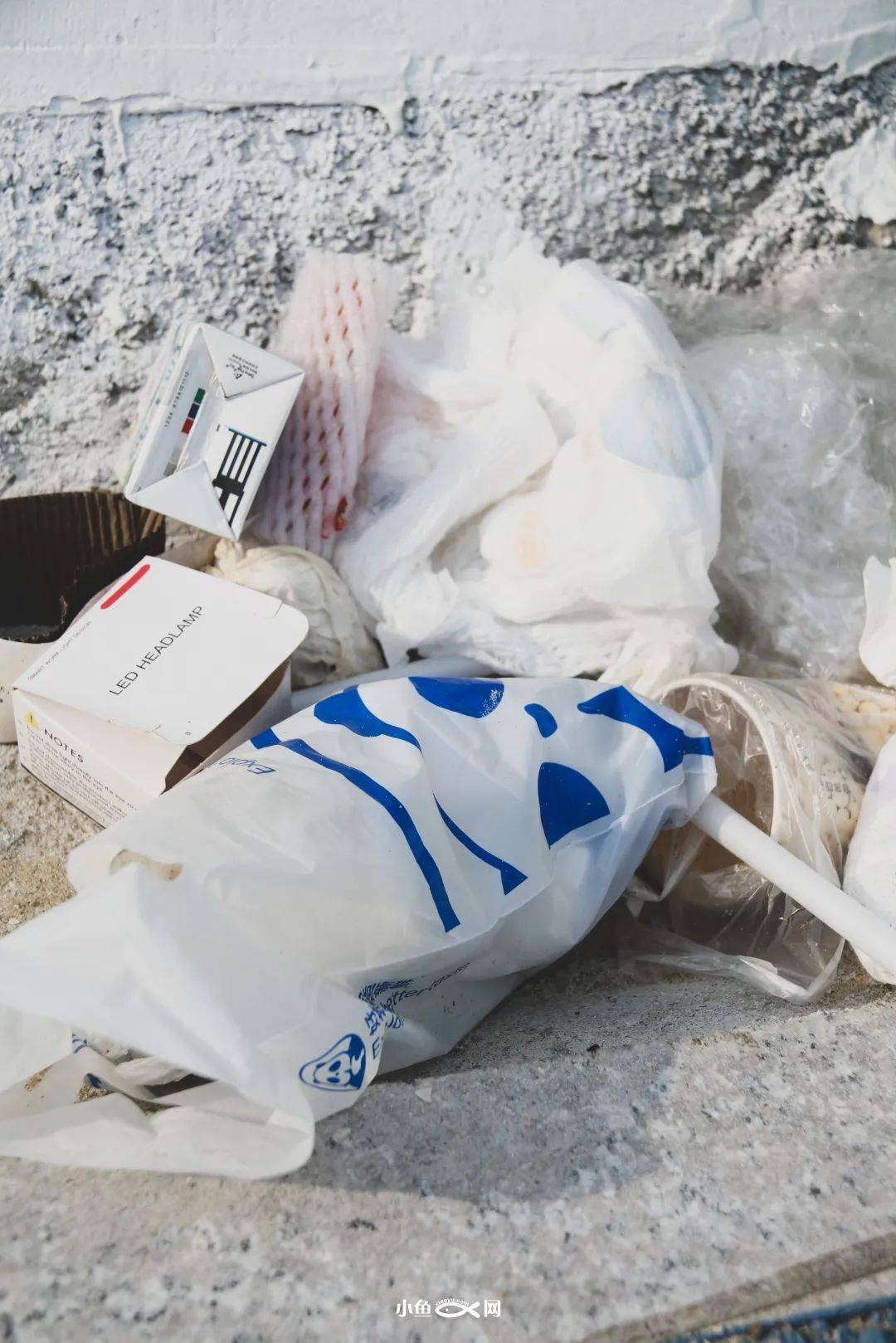 塑料瓶、零食袋,还有被海水浸透,却没有散架的白色纸张……它们来自路过这里的人,却不知要随着海浪飘向哪里。