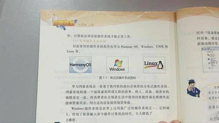 近日,有网友发现,华为鸿蒙系统已经被编进七年级学生《信息技术》课本中,与Windows等主流老牌操作系统并列,且排在首位介绍。