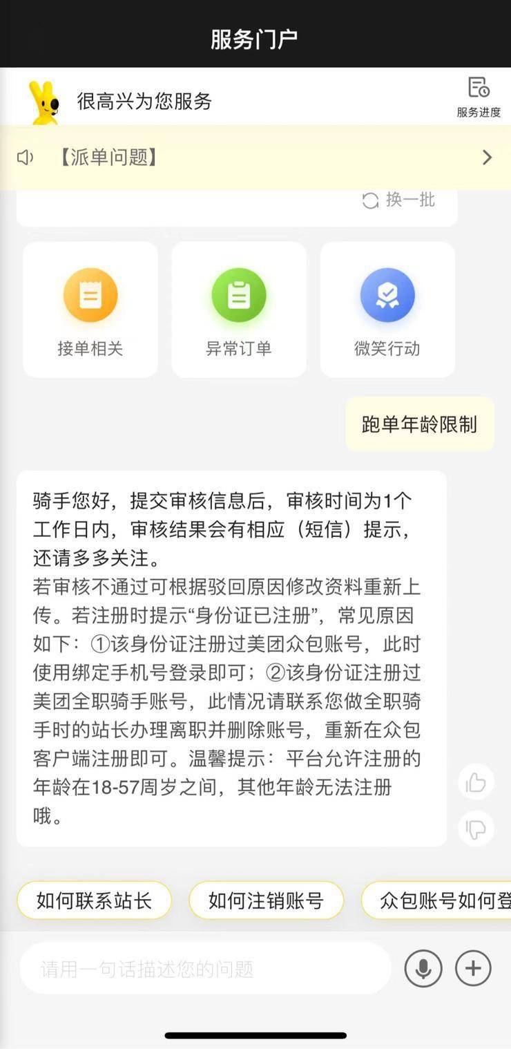 11月5日,一张“配送服务年龄到限通知”截图在多个社群流传,称年龄超过45岁后,就不再符合美团及配送服务商的服务规范,系统将不再派送订单。