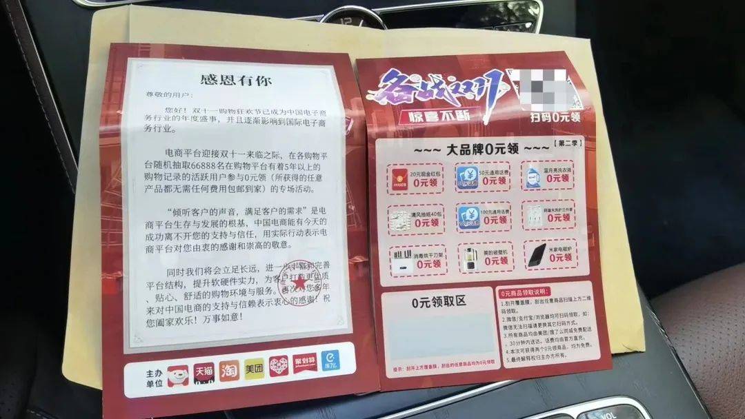 近日,王女士收到了一个奇怪的快递,快递上收件人的名字和地址准确无误,拆开快递后,王女士发现里面是一个信封,信封内有一张刮刮卡和一张打印版的感谢信。刮刮卡上方醒目的写着“备战双11”,右上方还有一个二维码,下面写着“扫码0元领”。多次听过民警反诈宣传的王女士一看就知道,自己这是遇上骗子了。