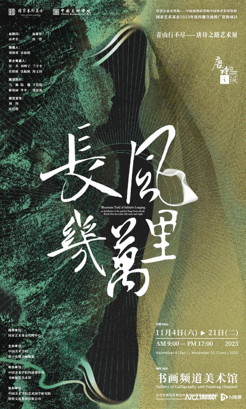 11月4日,由中国美术学院和数字电视书画频道主办,中国美术学院科研创作处、书画频道美术馆承办,国家艺术基金管理中心指导,中国美术学院艺术国学研究院、敦煌文旅集团有限公司共同协办的国家艺术基金2023年度传播交流推广资助项目:“第四届青山行不尽——唐诗之路艺术展:长风几万里”在北京书画频道美术馆正式开幕。