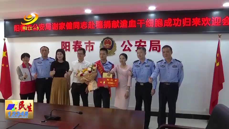 近日(3日),两场特殊的欢迎仪式分别在阳春市公安局、广东新兴铸管有限公司举行。阳春市第6例、第7例造血干细胞捐献者谢家健、郭海洋成功捐献造血干细胞后返回家乡,受到热烈欢迎。