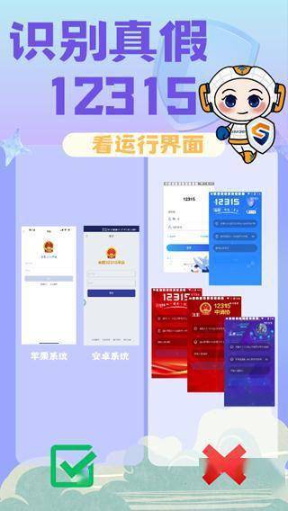 相较“高仿”版,真实的“全国12315平台”APP自带权威气质,找准下面几个不同,就能快速识别。