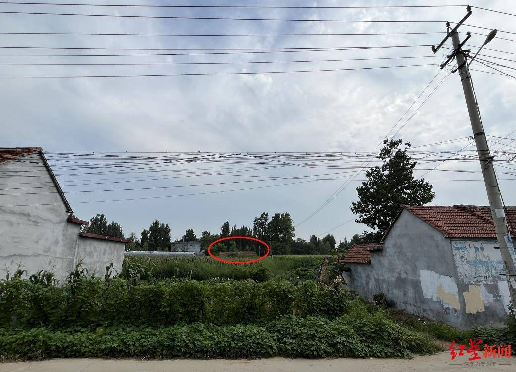 ▲窦勤孝家与贺法田家(红圈)隔着一条村马路和一块空地