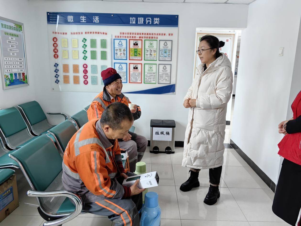 同时,志愿者还邀请环卫工人到社区志愿服务站休息,为环卫工人送去热水、保温杯、手套、热帖、暖瓶等保暖物资。志愿者还向环卫工人介绍,社区志愿服务站可为环卫工人提供免费休息、充电、热水、微波等服务。欢迎环卫工人常来“歇脚”。志愿者的助力让环卫工人用心付出呵护着这座城市的同时,也感受到了来自和悦社区新时代文明实践站的一份温暖。