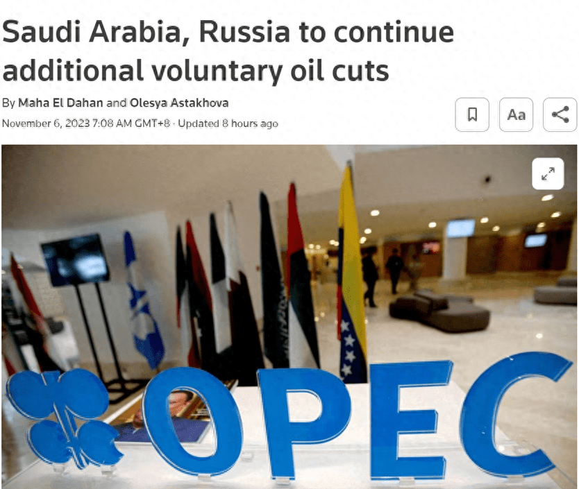 在沙特发表声明后,俄罗斯宣布,俄罗斯将按照此前宣布的计划,继续自愿额外削减30万桶/天的原油产量和石油产品出口供应,直至今年12月底。