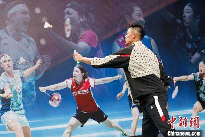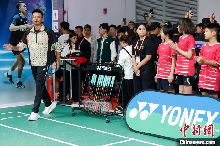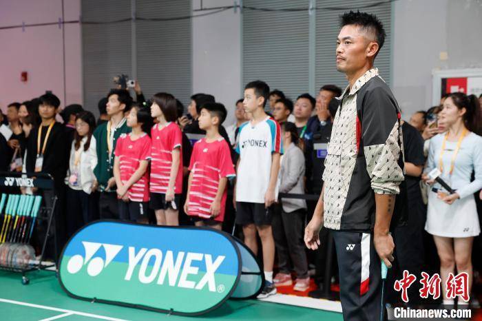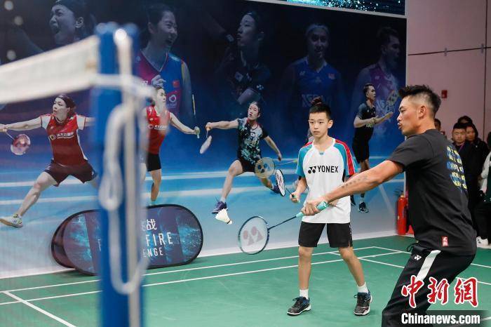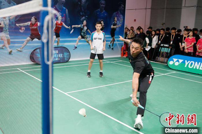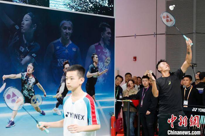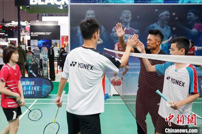 前奥运冠军,羽球界的传奇人物林丹在YONEX展台与青少年互动。中新网记者 殷立勤 摄