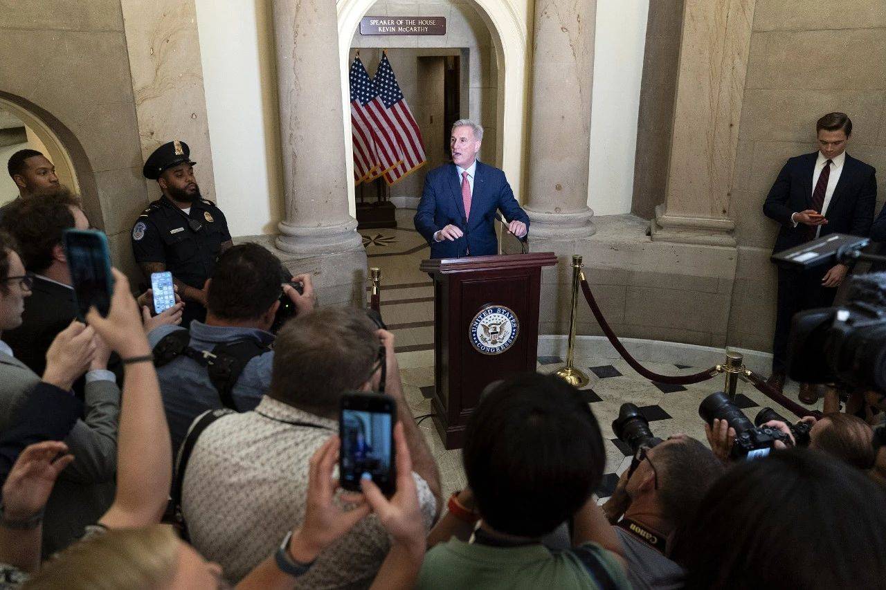 当地时间2023年9月12日,美国华盛顿特区,众议院议长凯文·麦卡锡表示,他将指示众议院委员会对美国总统拜登展开正式的弹劾调查。图/视觉中国