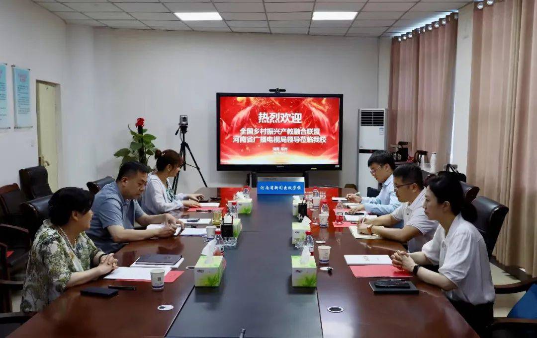 7月12日上午,全国乡村振兴产教融合联盟副理事长崔明明、副秘书长王浩瑞一行到河南省新闻出版学校进行调研,省广播电视局公共服务处乡村振兴直播产业基地建设负责人常丹,也应邀一同参观考察我校乡村振兴电商人才培养基地软硬件筹备情况及运行情况,并与校领导和相关工作负责人就乡村振兴电商人才培养基地暨村村播工程示范校建设情况和我校服务乡村振兴典型经验进行了座谈交流。我校党委书记琚涛、副校长王新东、文化传播系主任曹瑞春及负责乡村振兴的相关同志参加了本次活动。