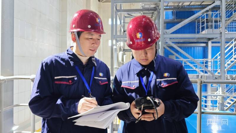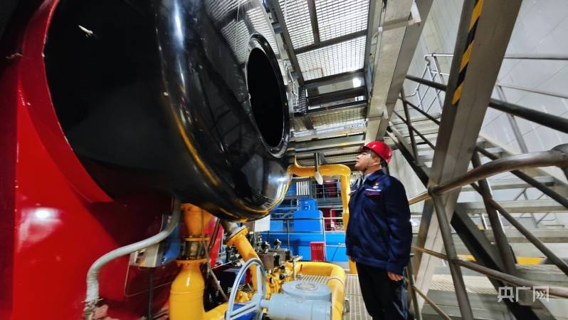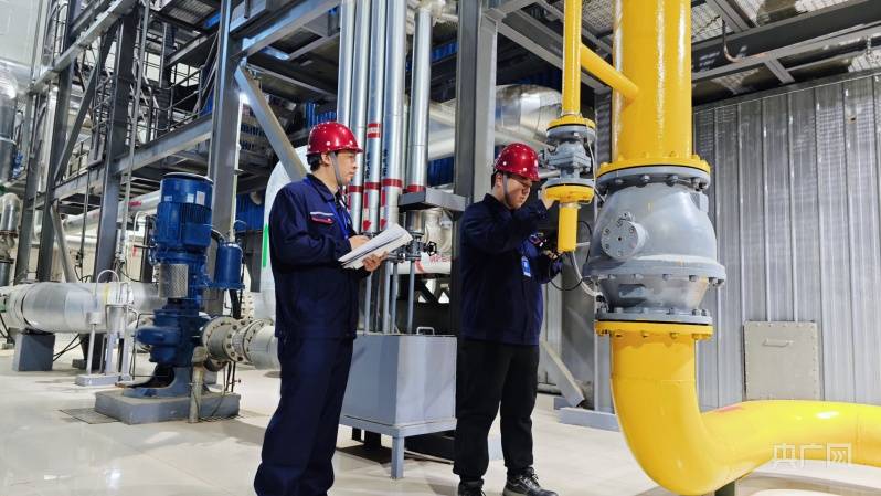 工作人员正在检查锅炉房设施(央广网记者 朱冠安 摄)