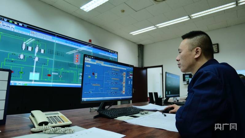 工作人员正在监测供热参数(央广网记者 朱冠安 摄)
