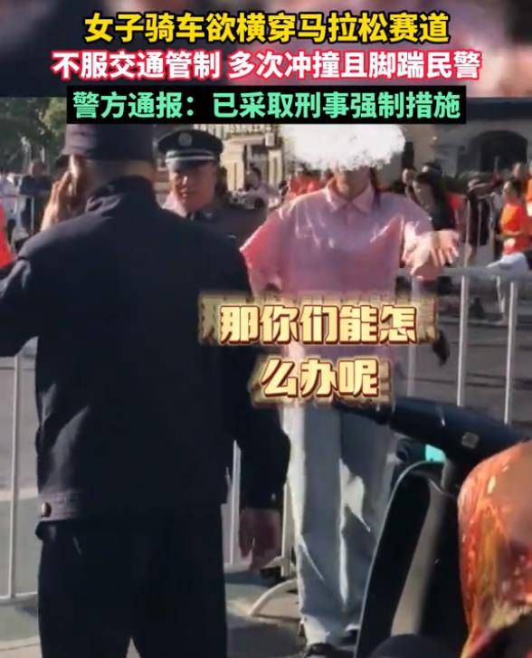 女子在马拉松赛场旁脚踹民警警情通报来了,该女子已被依法采取刑事强制措施。女子不知道因为有什么着急事,非要穿越马拉松的交通管制,遭到民警阻止后,先是电动车冲撞,后又脚踹民警。